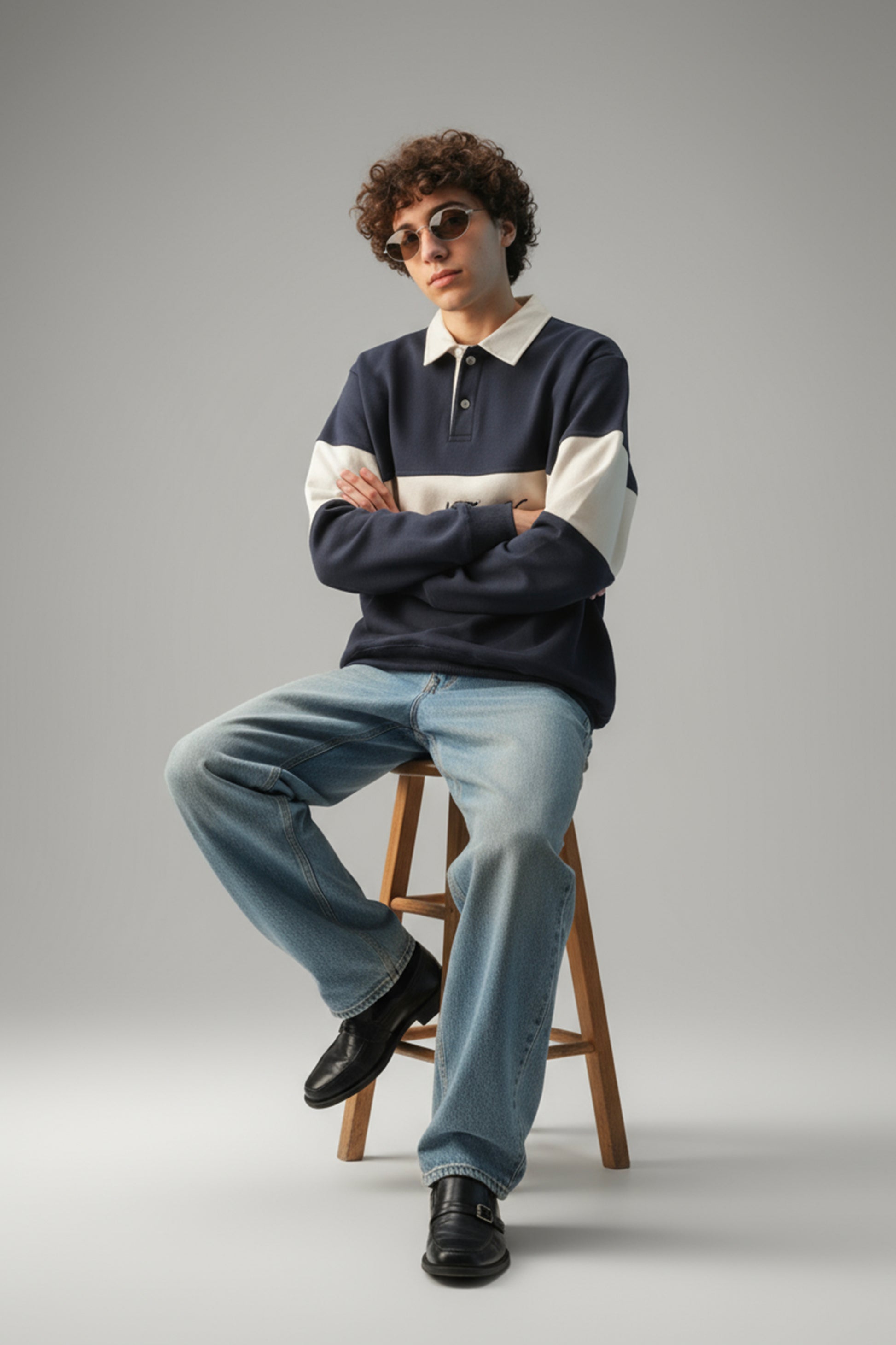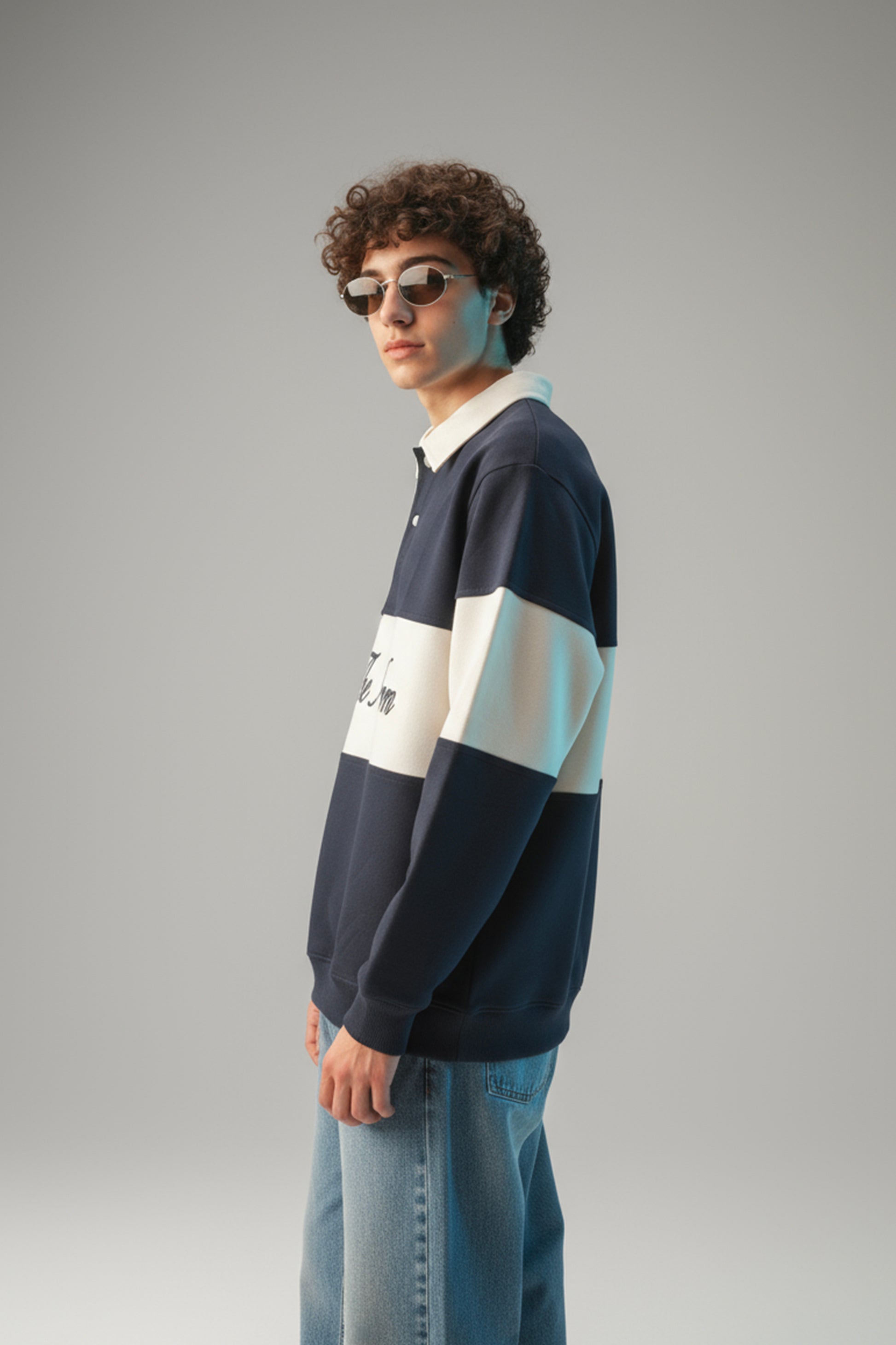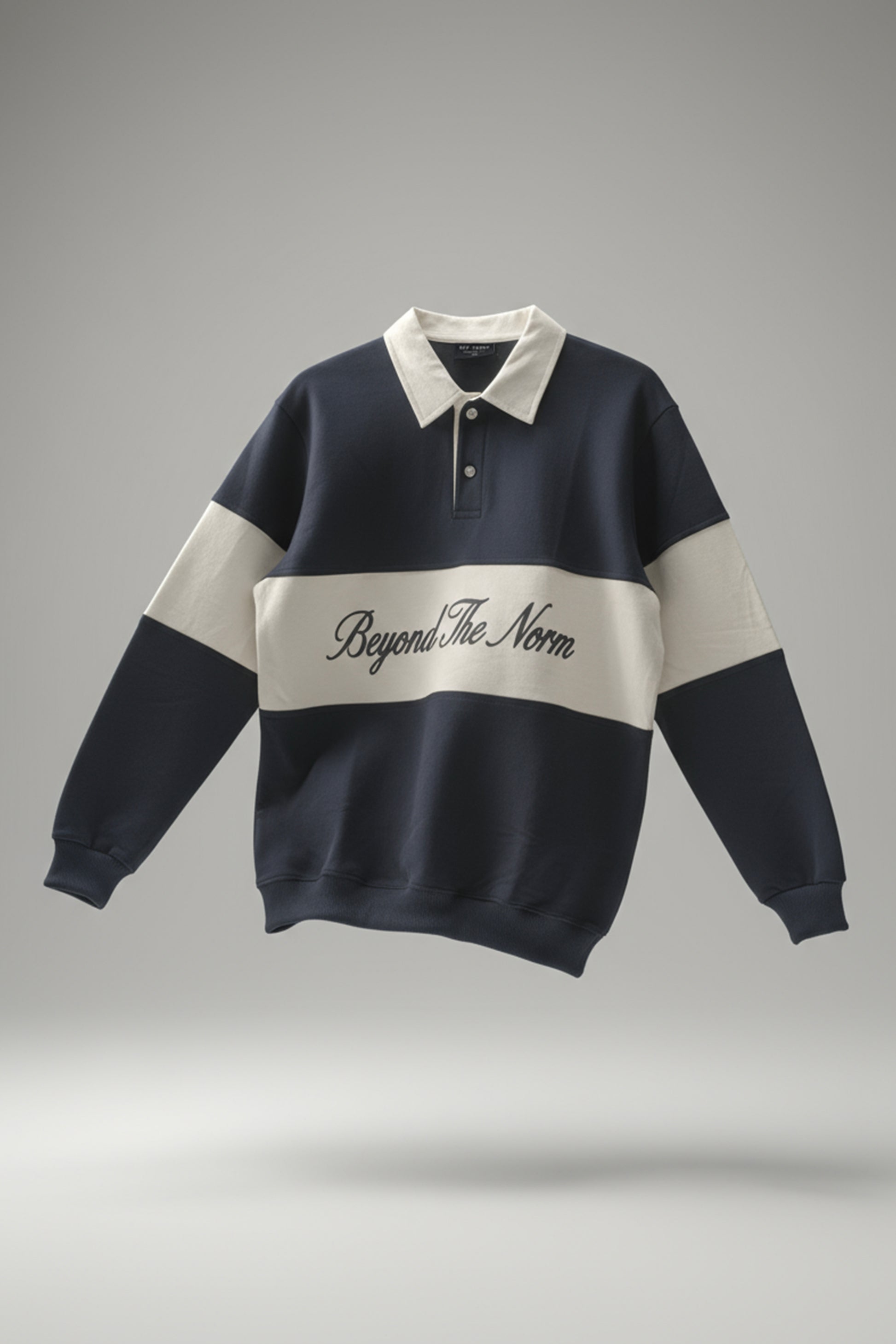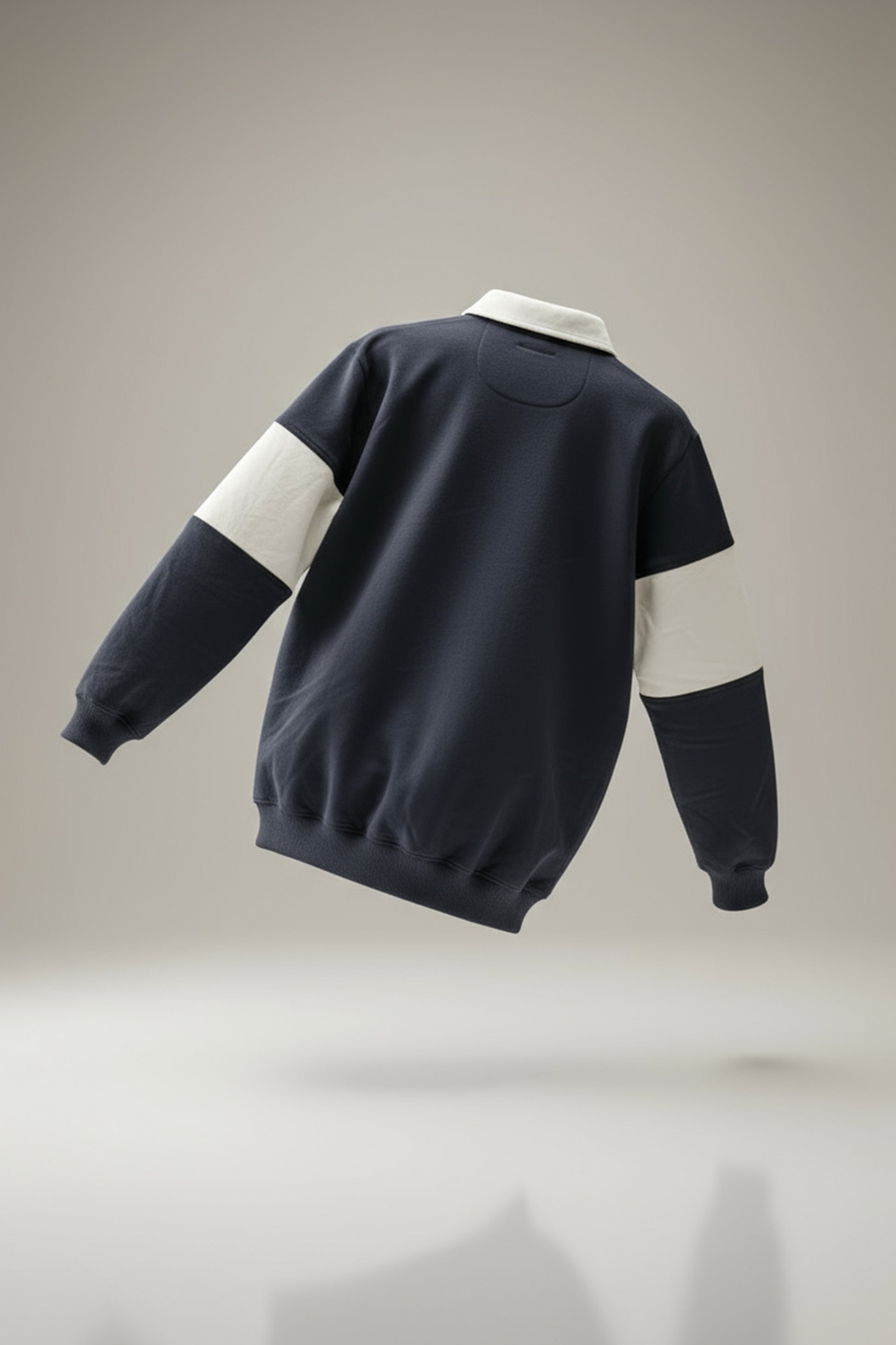 Crafted from 100% Cotton Looper, Midnight Ivory balances depth and restraint. The navy grounds you in quiet confidence, while the ivory band slices through with composure. It’s minimal, timeless, and made for minds that move differently.
