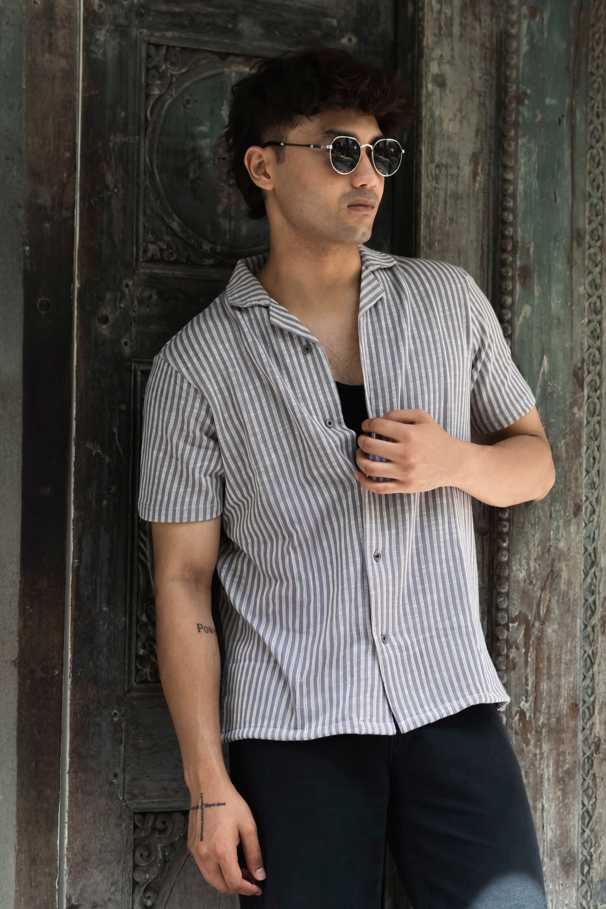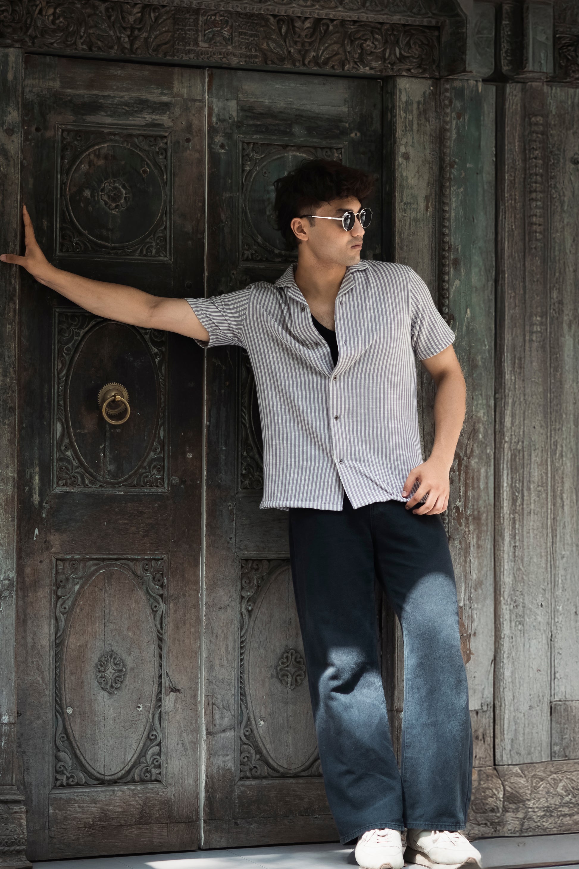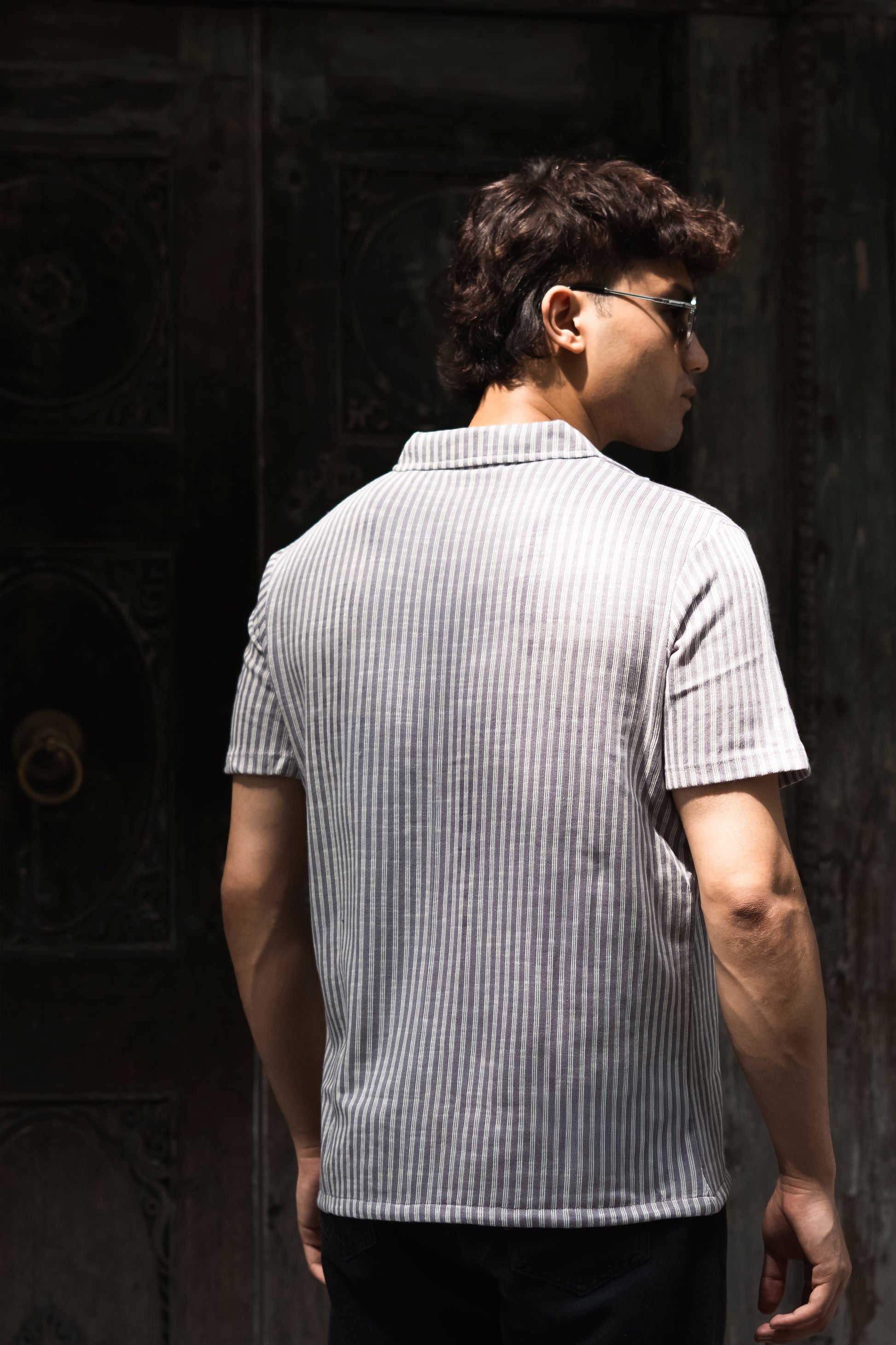 Embrace the rhythm of the untamed with Dune Drift, a Cuban shirt designed for those who live beyond the ordinary. Crafted from premium textured knit fabric, this piece captures the essence of sun-faded landscapes, bringing a blend of soft mauve and sand-beige stripes to life. The lightweight, breathable structure ensures effortless movement, while the laid-back Cuban collar delivers an iconic, retro-classic aesthetic.