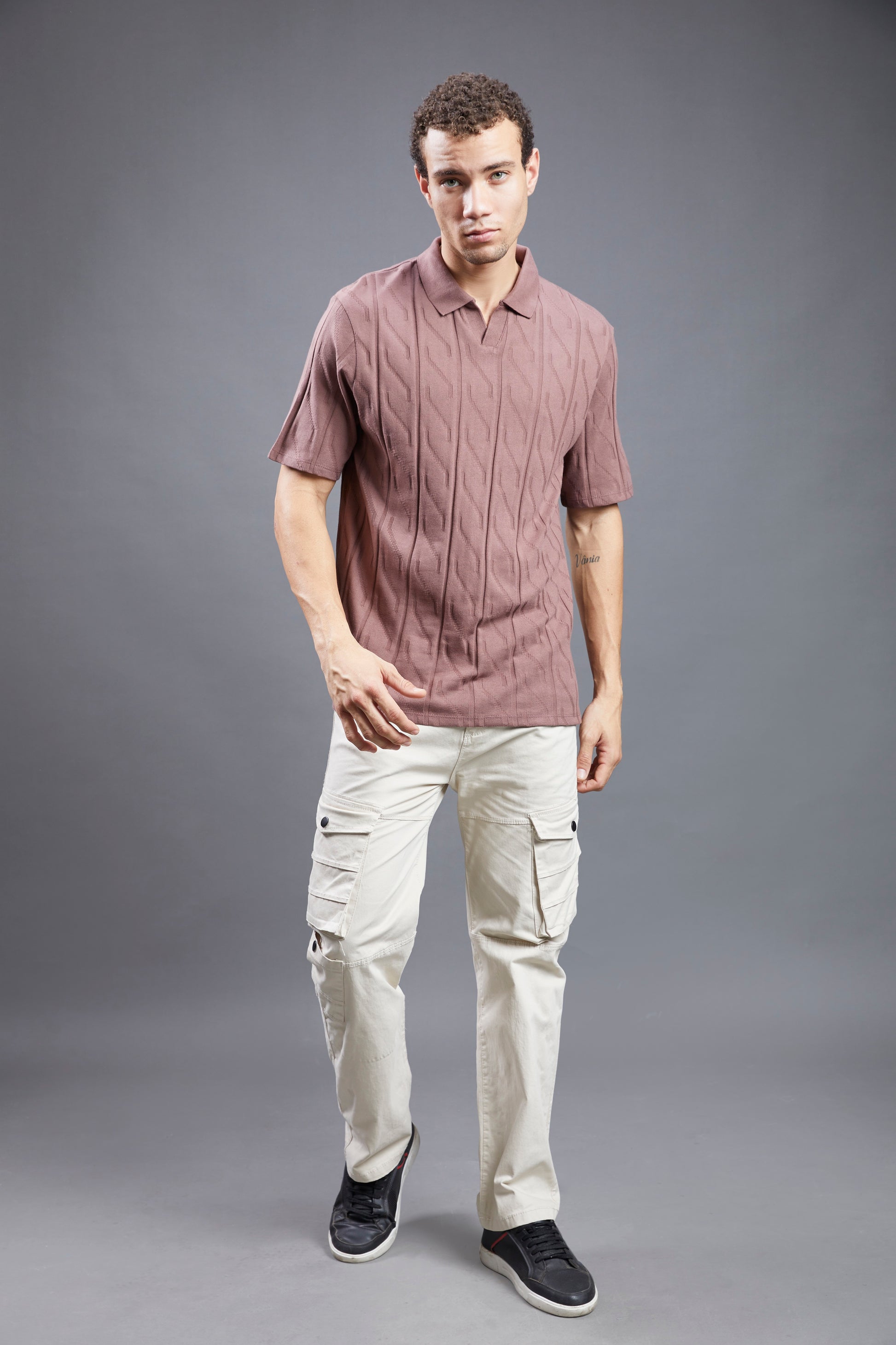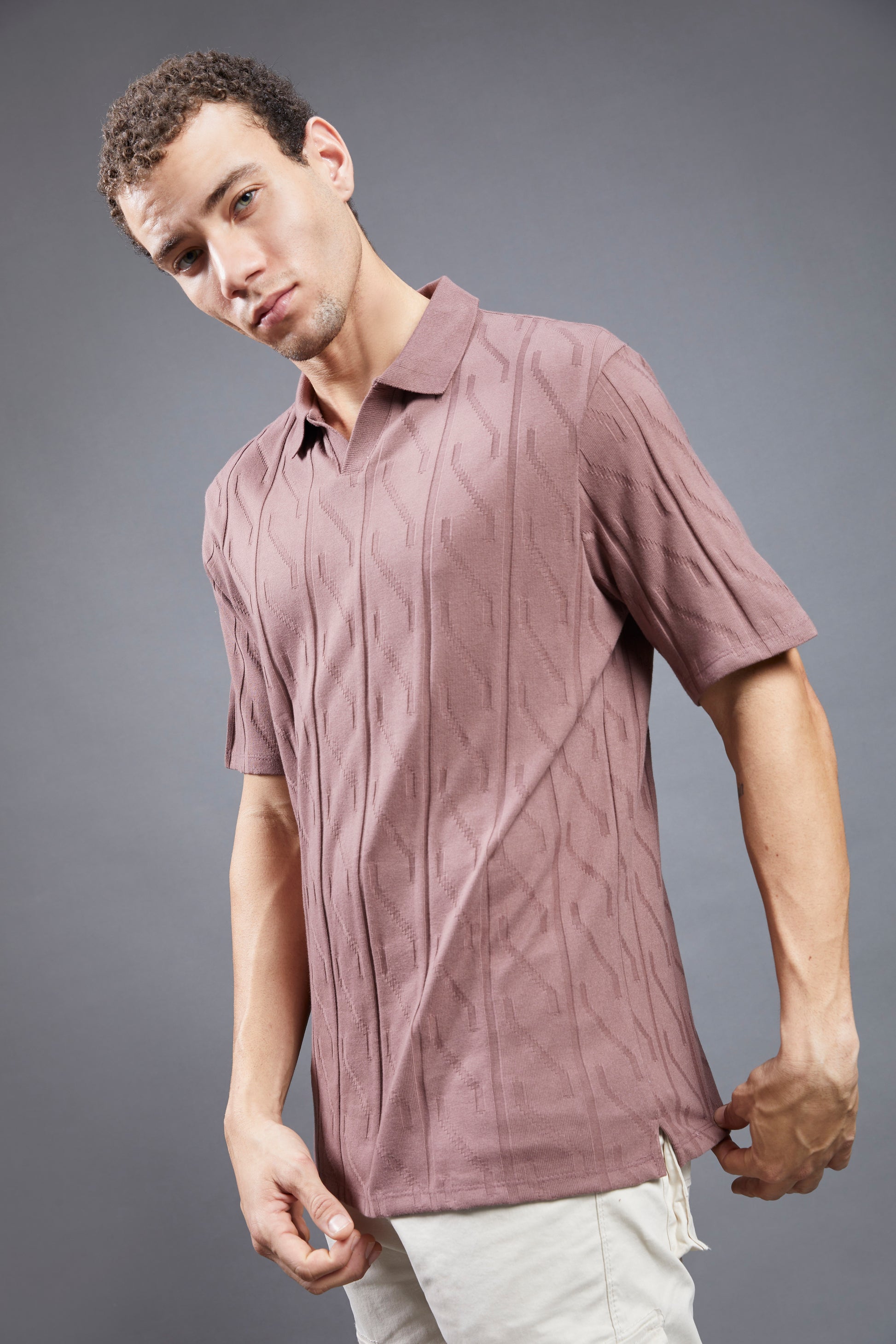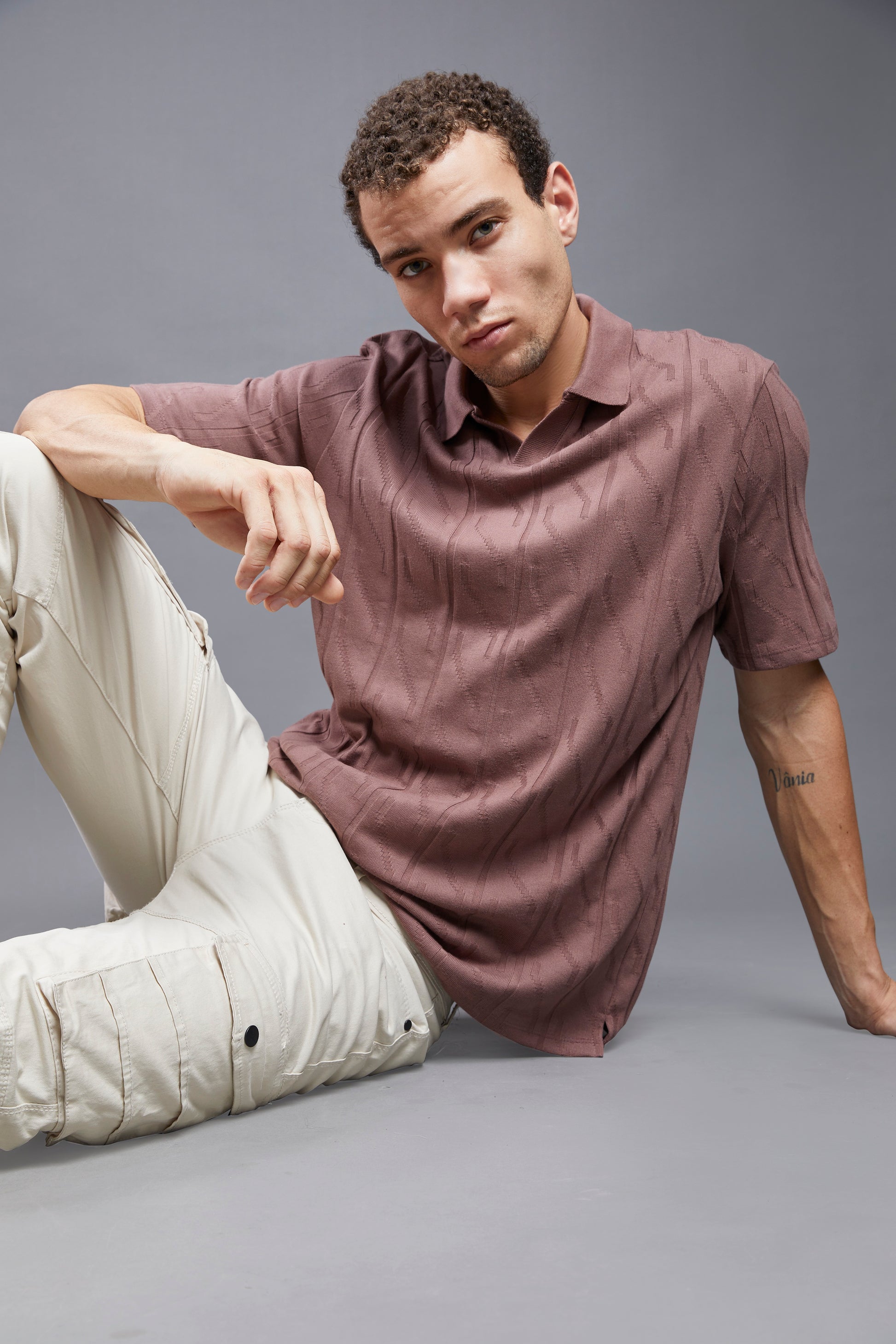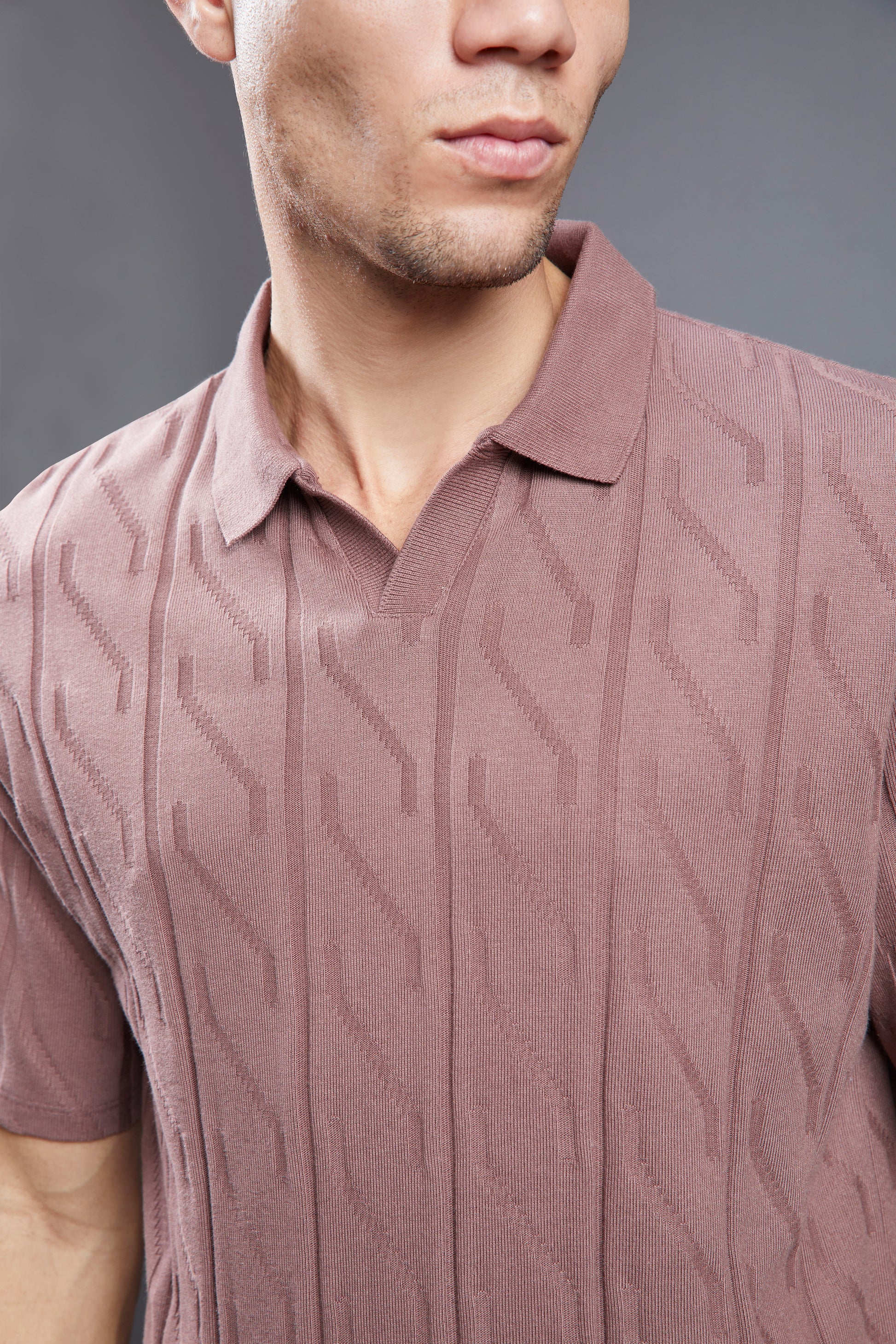 A dusty mauve knit polo with an embossed zigzag line motif that flows like circuits on fabric. Designed for those who love texture over noise — this piece quietly commands attention. Tailored yet relaxed, it's a reminder that even the most intricate paths can look effortless when you're in your element.