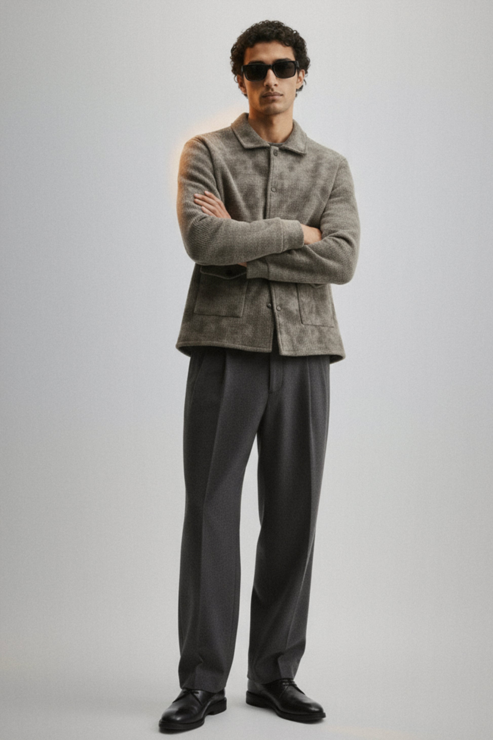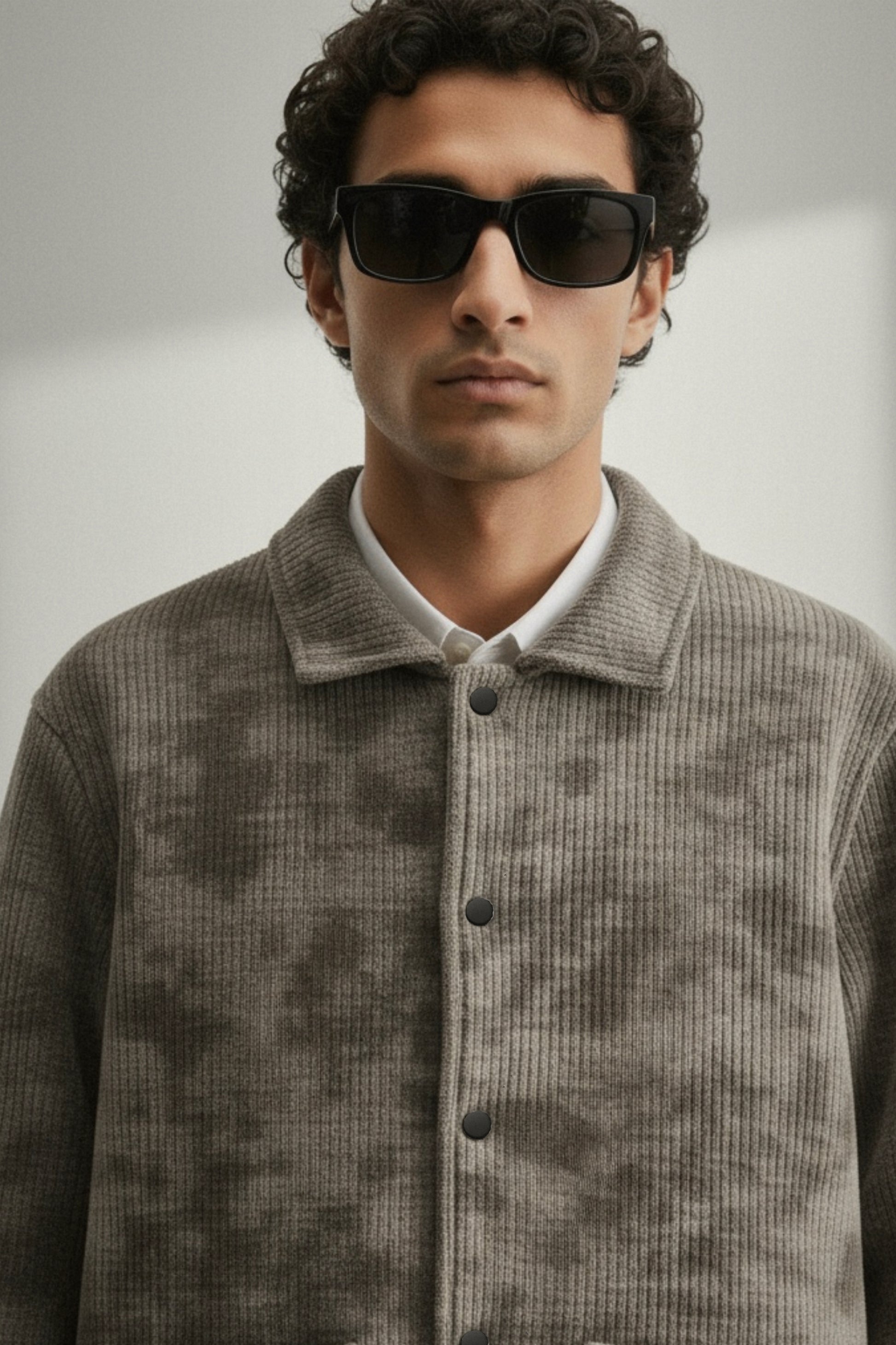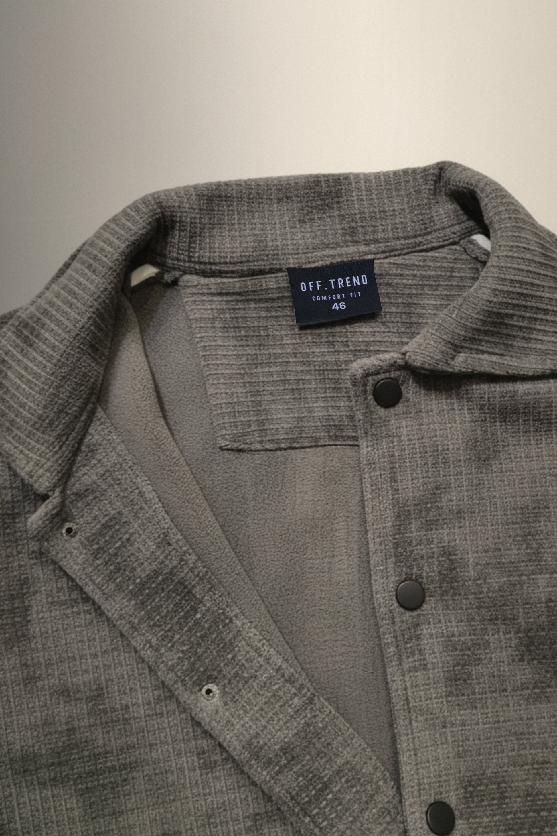 The Echo of Perception– Ash Taupe Overshirt is crafted from textured cotton with bonded fleece lining — built for those who value depth over noise.