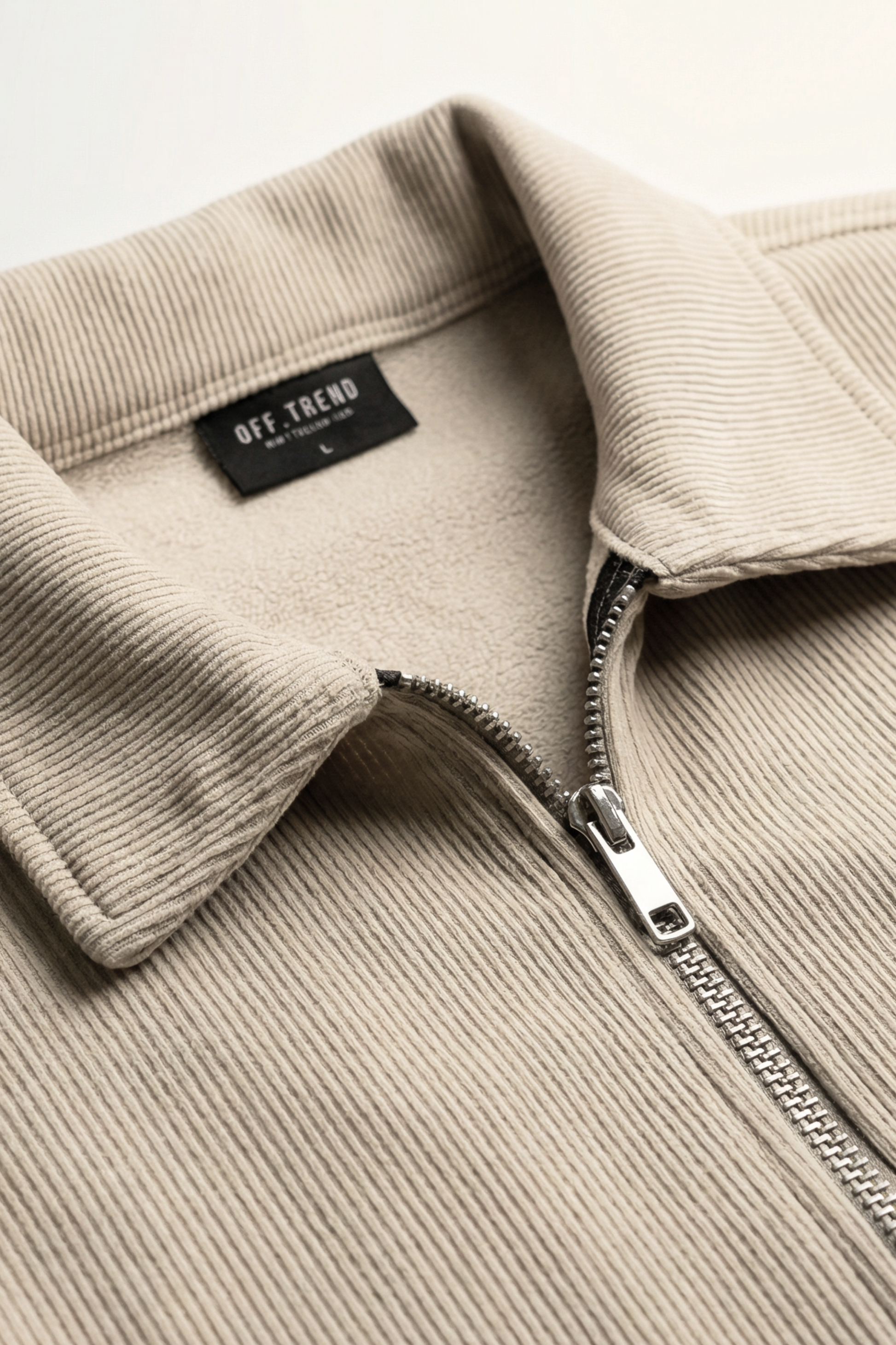 - Classic shirt-style collar with a clean full-length zipper