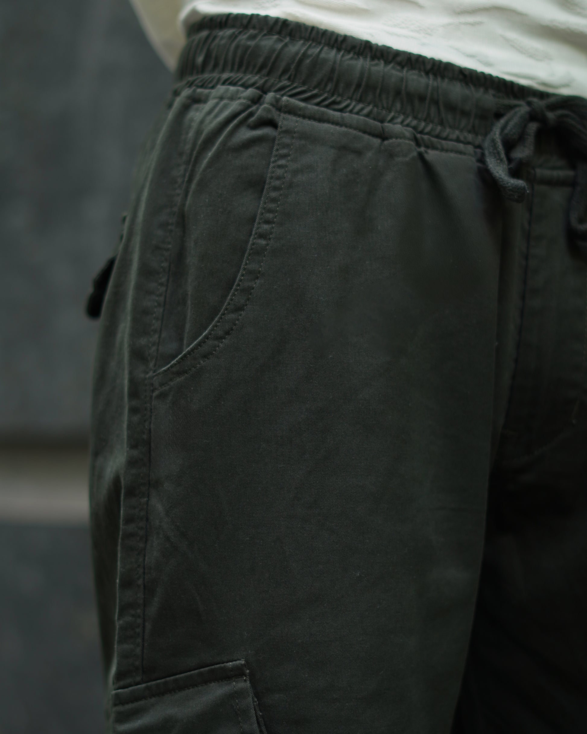The Forest Shadow Cargo blends rugged practicality with understated style. In a deep, muted green tone, these cargos feature a relaxed straight-leg fit and a soft, breathable cotton fabric for all-day ease. Equipped with six functional pockets, including roomy side cargo compartments, they keep essentials close at hand. An elasticated drawstring waistband offers a secure yet comfortable fit, making them ideal for casual outings, travel, or streetwear layering.