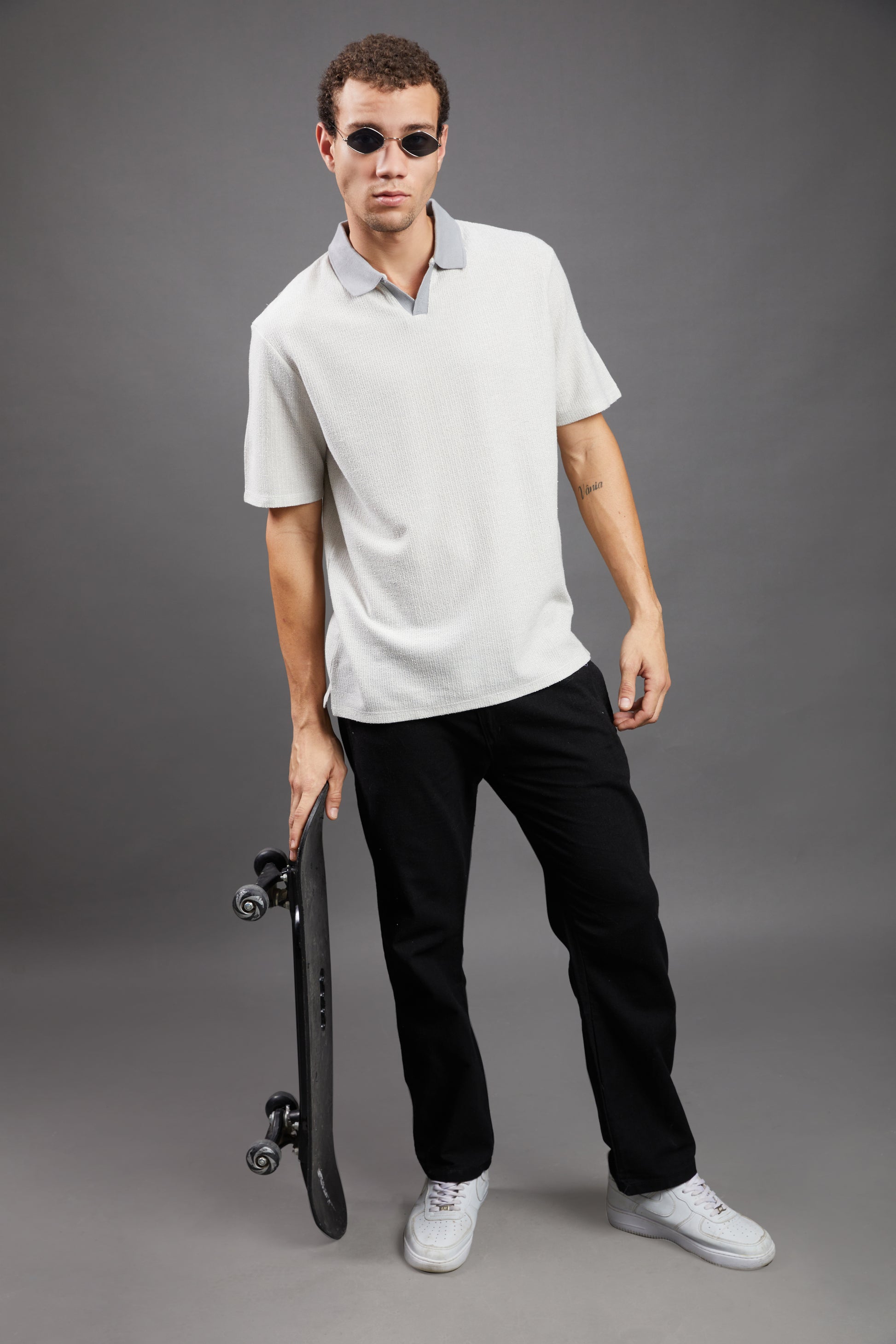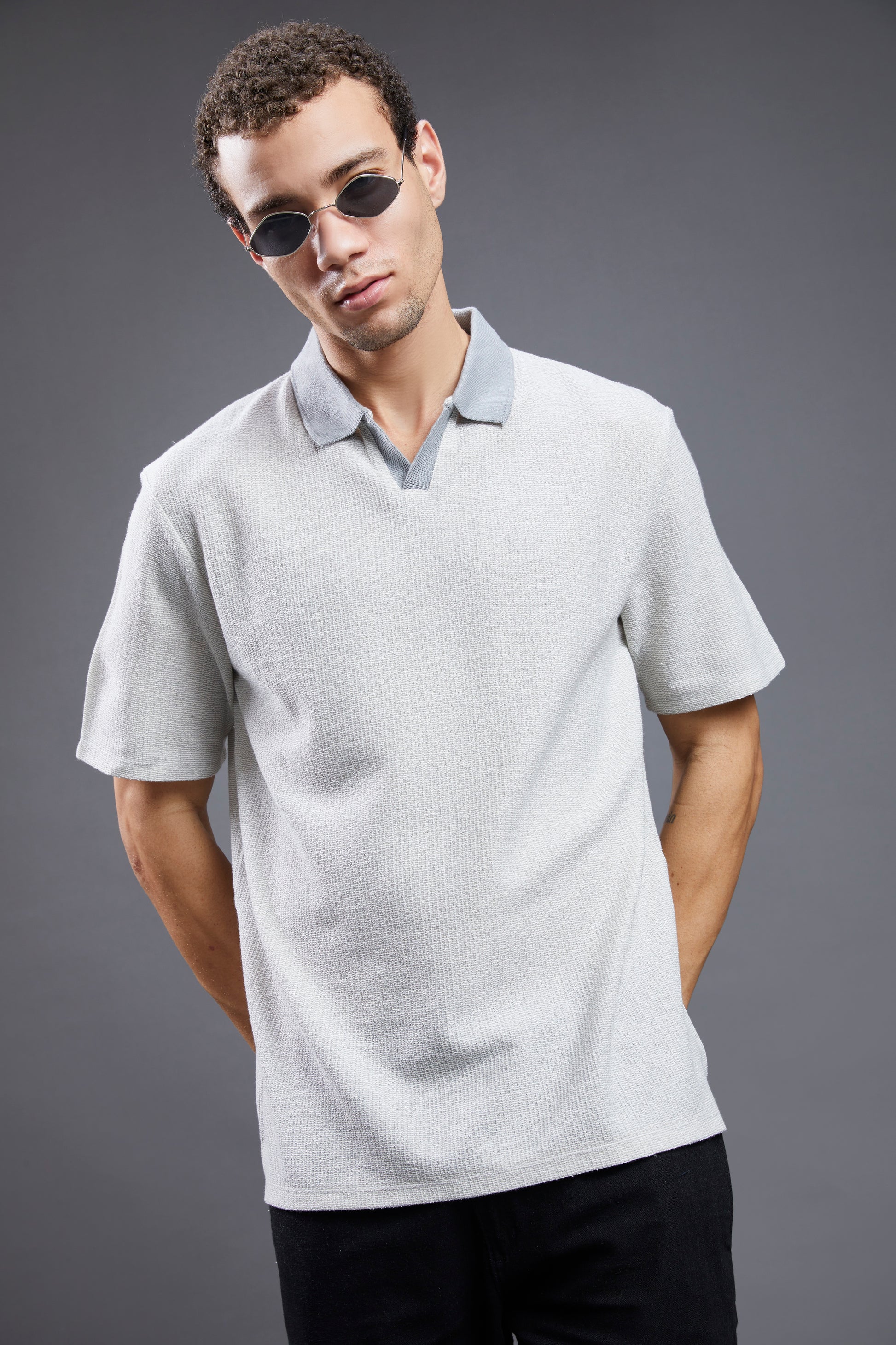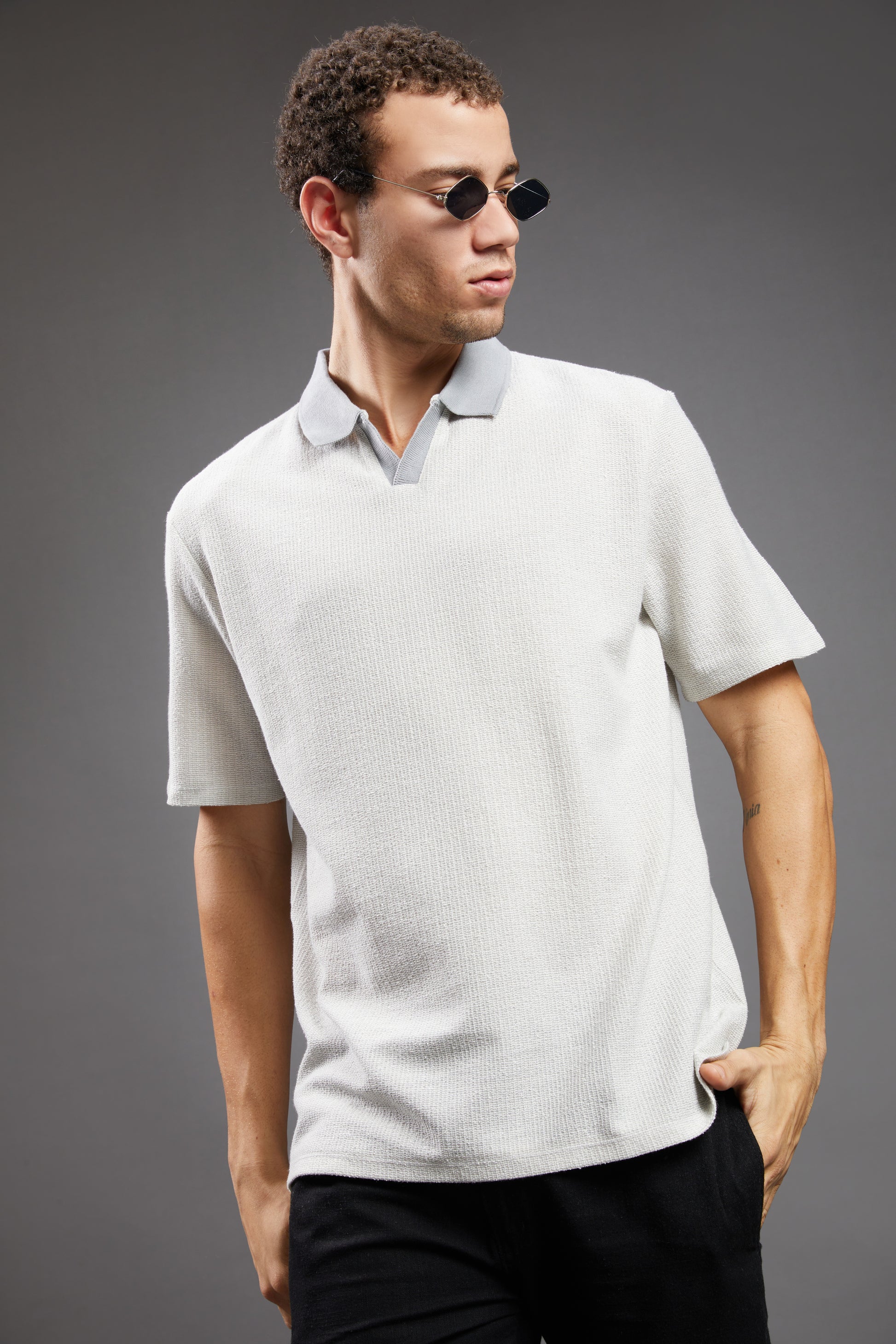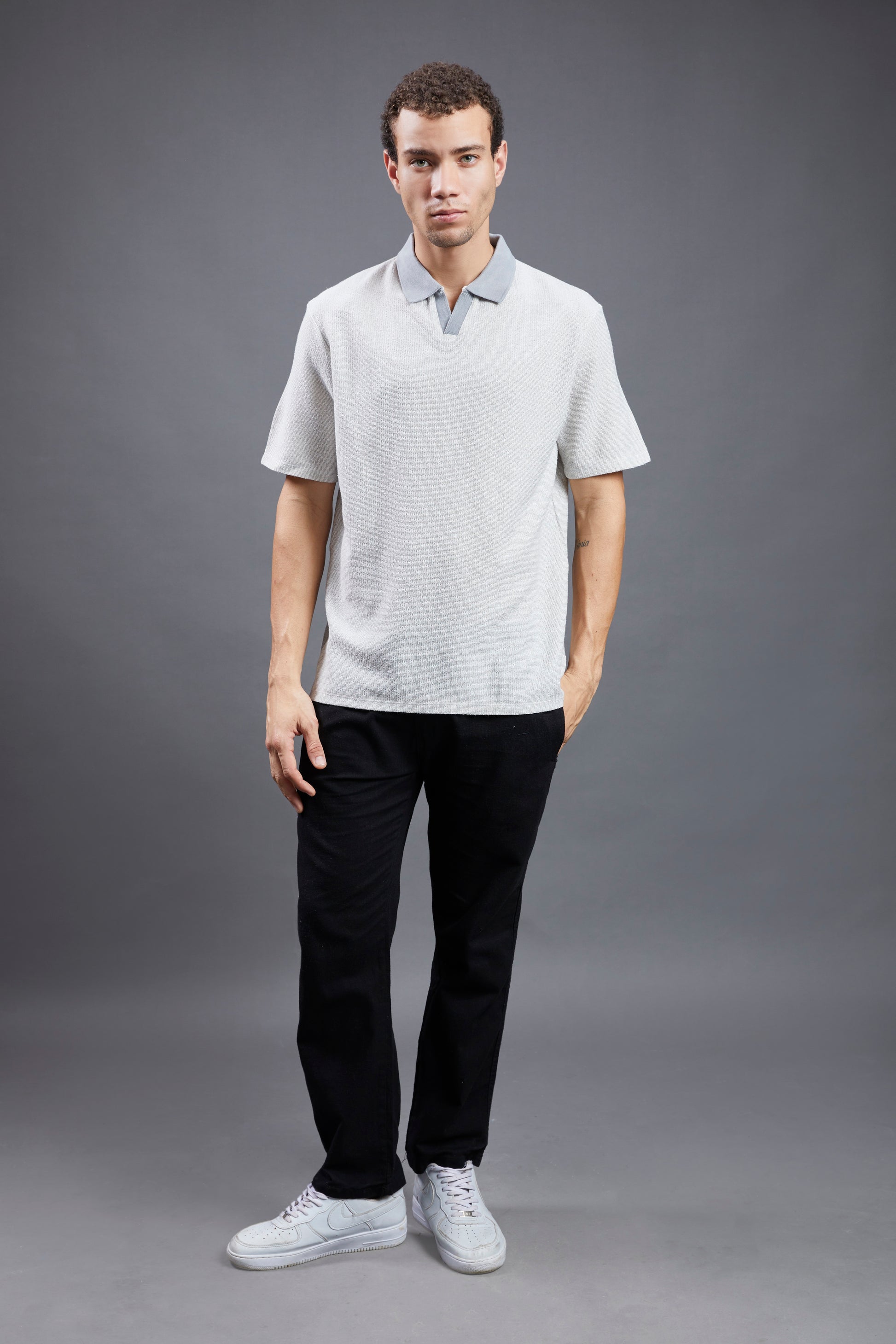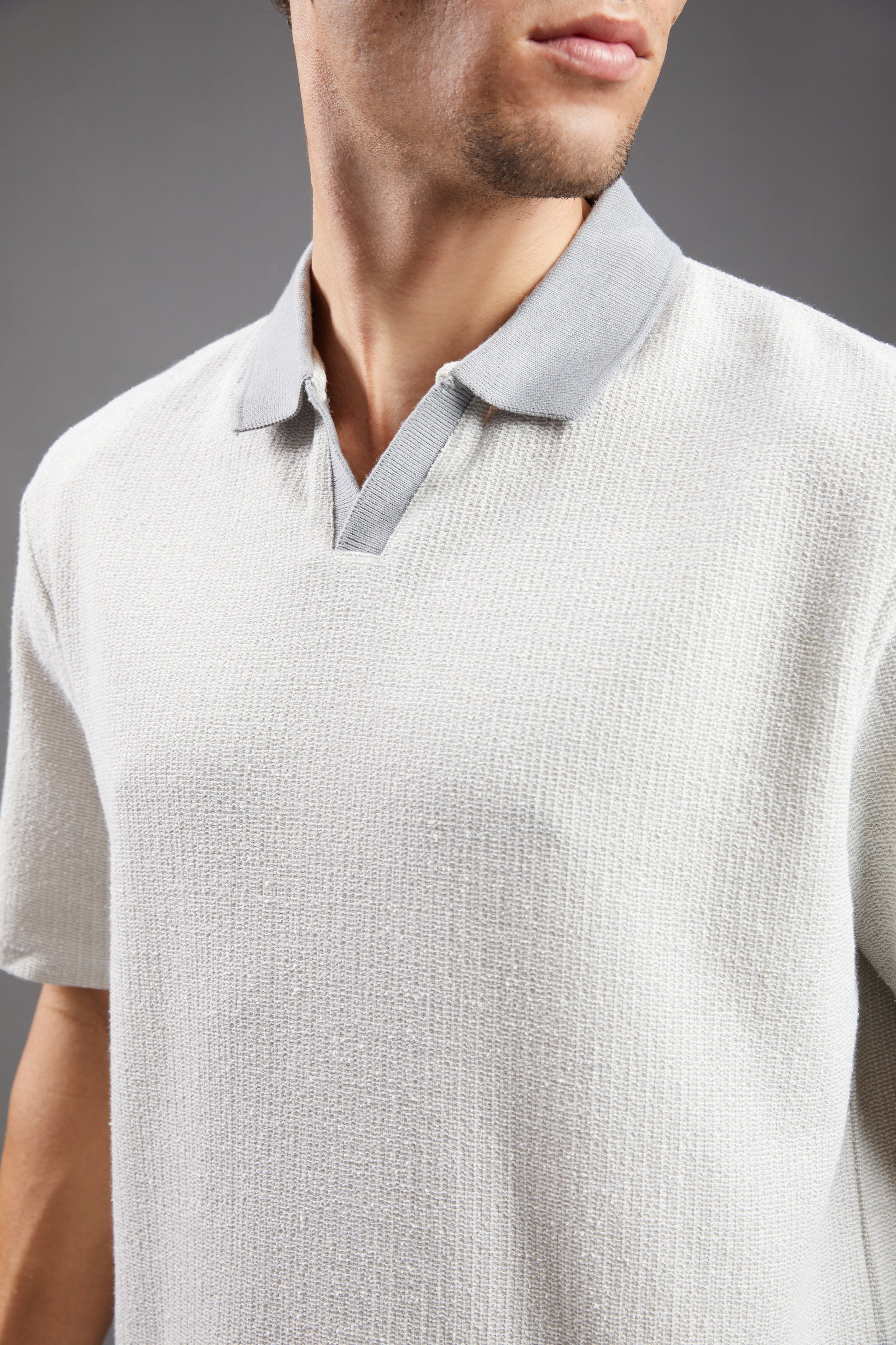 - Neckline: Polo