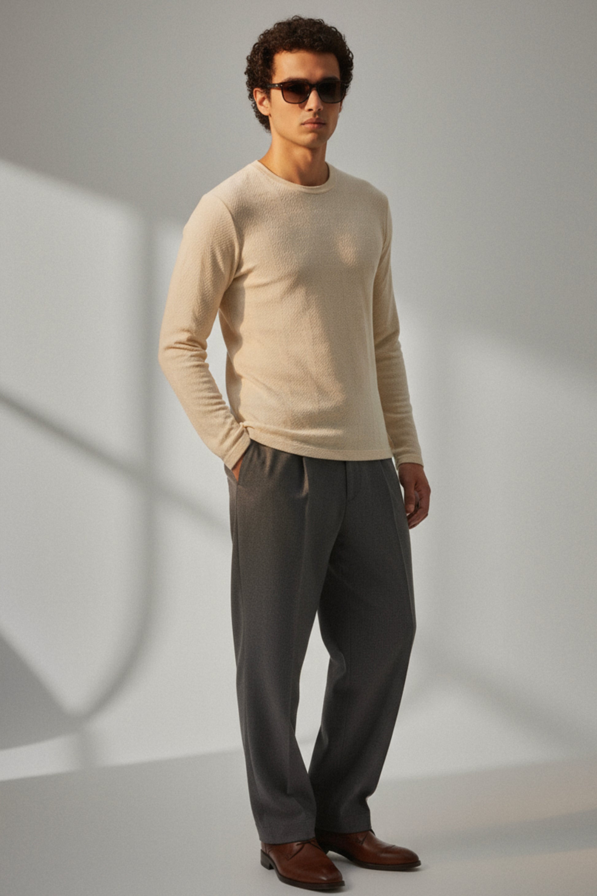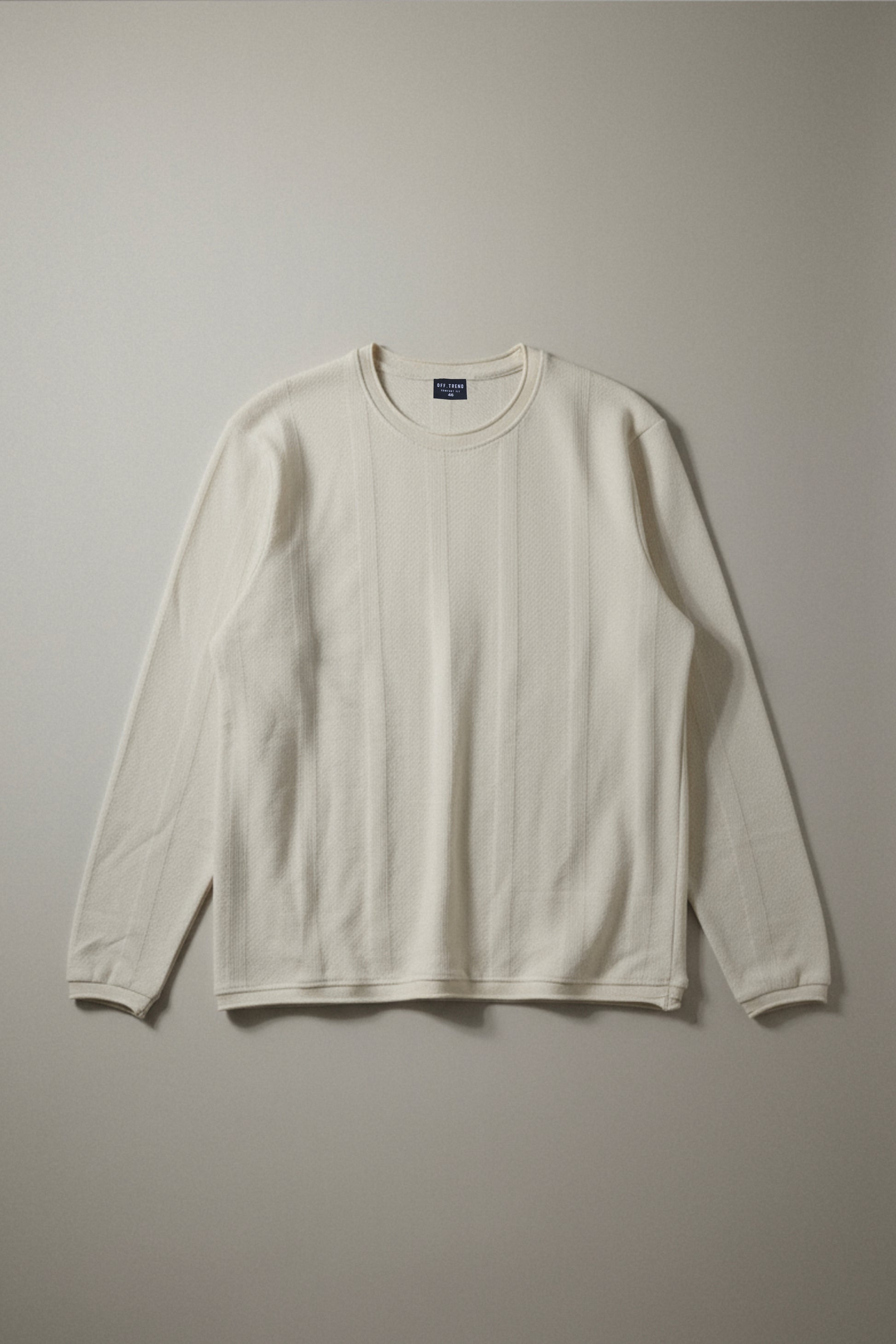 The Parallel Calm – Ivory Dusk knit tee pairs a soft 260 GSM textured knit with Offtrend’s signature minimalist design. Light in tone yet grounded in presence, it’s made for those who stand out without trying.