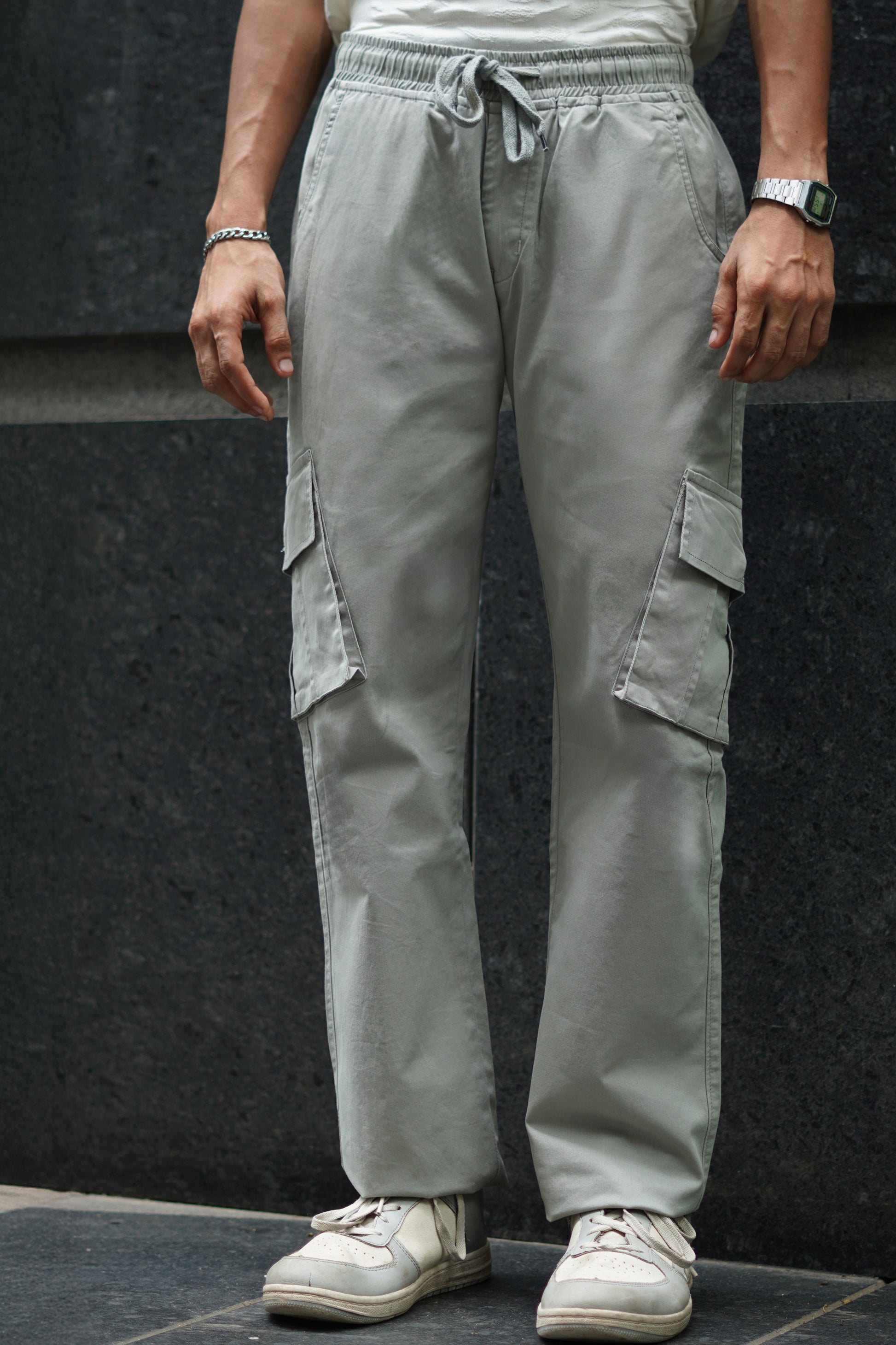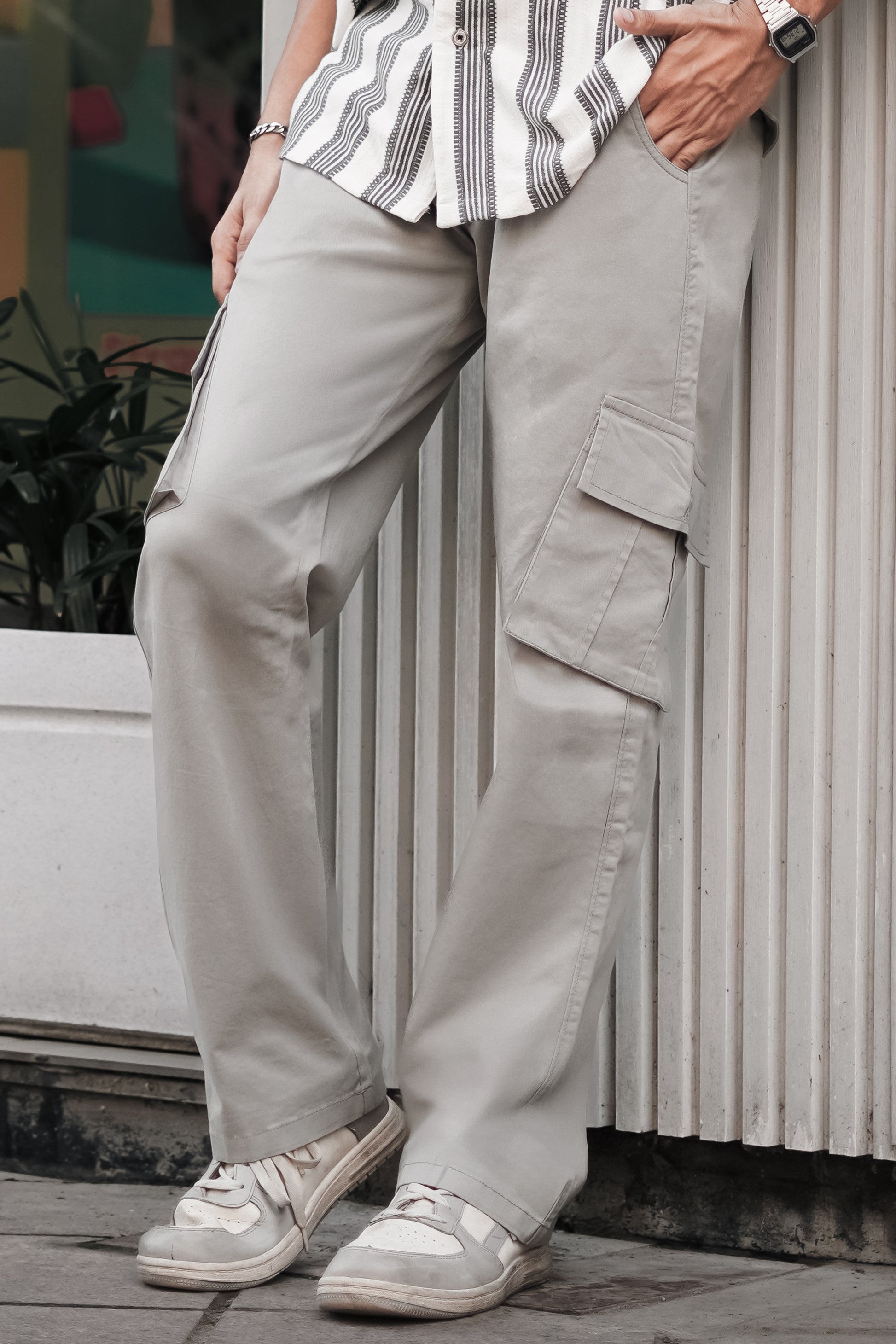 Stone Grey Mid Rise Relaxed Fit Cargo Pants